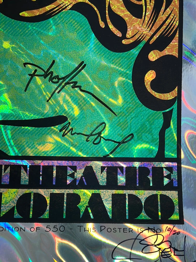 Edition: 1st edition, FOIL VARIANT, hand signed and numbered out of only 50. Signed by poster artist and by THE BAND!